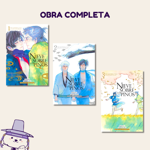En Nieve sobre los pinos de Hidebu Takahashi, el destino entrelaza los caminos de Yuki, un asesino que abandona su clan, y Shôan, un médico bondadoso que lo salva de una muerte inminente bajo la nieve. Lo que comienza como una relación carnal sin siquiera conocer sus nombres evoluciona hacia un vínculo profundo en el que comparten sus secretos y enfrentan juntos las cicatrices del pasado. A medida que Yuki deja atrás su vida como asesino, ambos construyen una existencia sencilla pero plena, marcada por desafíos que pondrán a prueba su confianza y amor. En esta emotiva trilogía ambientada en el Japón antiguo, florece una conexión única que explora la redención, el sacrificio y un amor capaz de resistir el tiempo.